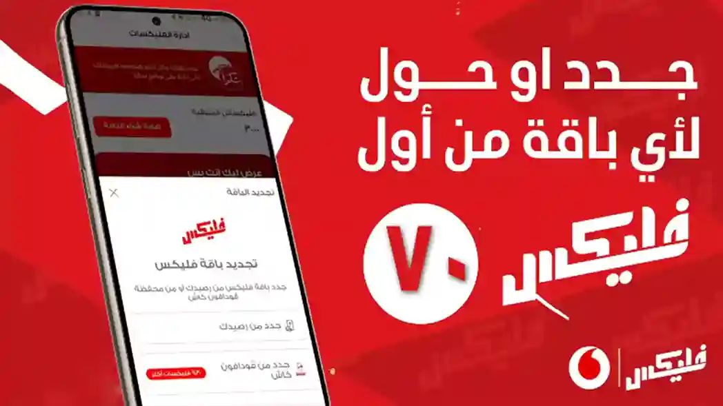 فليكس 70 هي واحدة من باقات فوادافون فليكس الشهرية التي تقدمها شركة فودافون ضمن نظام الفليكسات، ويمكن أستخدام هذه الوحدات “الفليكسات” يمكن أستخدامها في المكالمات والرسائل، والإنترنت.