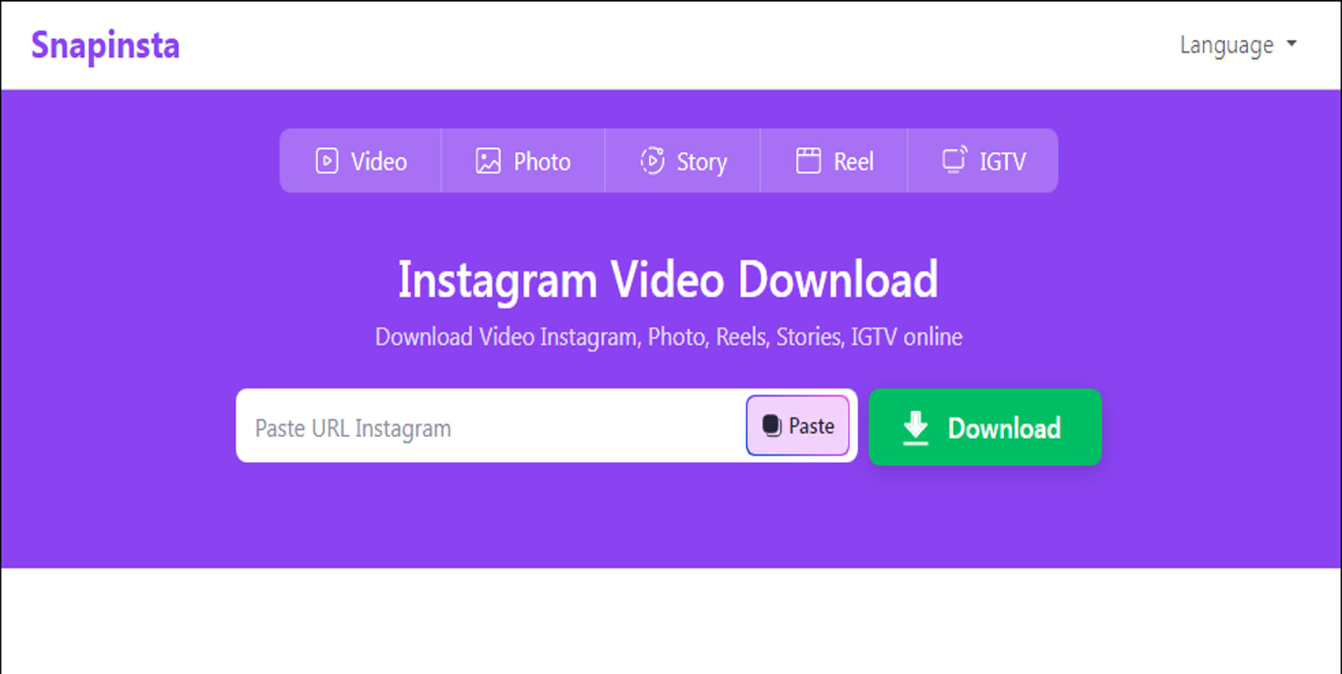 - يوفر أيضاً دعم شامل لتحميل جميع أنواع المحتوى الموجود على موقع إنستجرام والتى تشمل: الفيديوهات، الريلز، الصور، القصص، وIGTV.