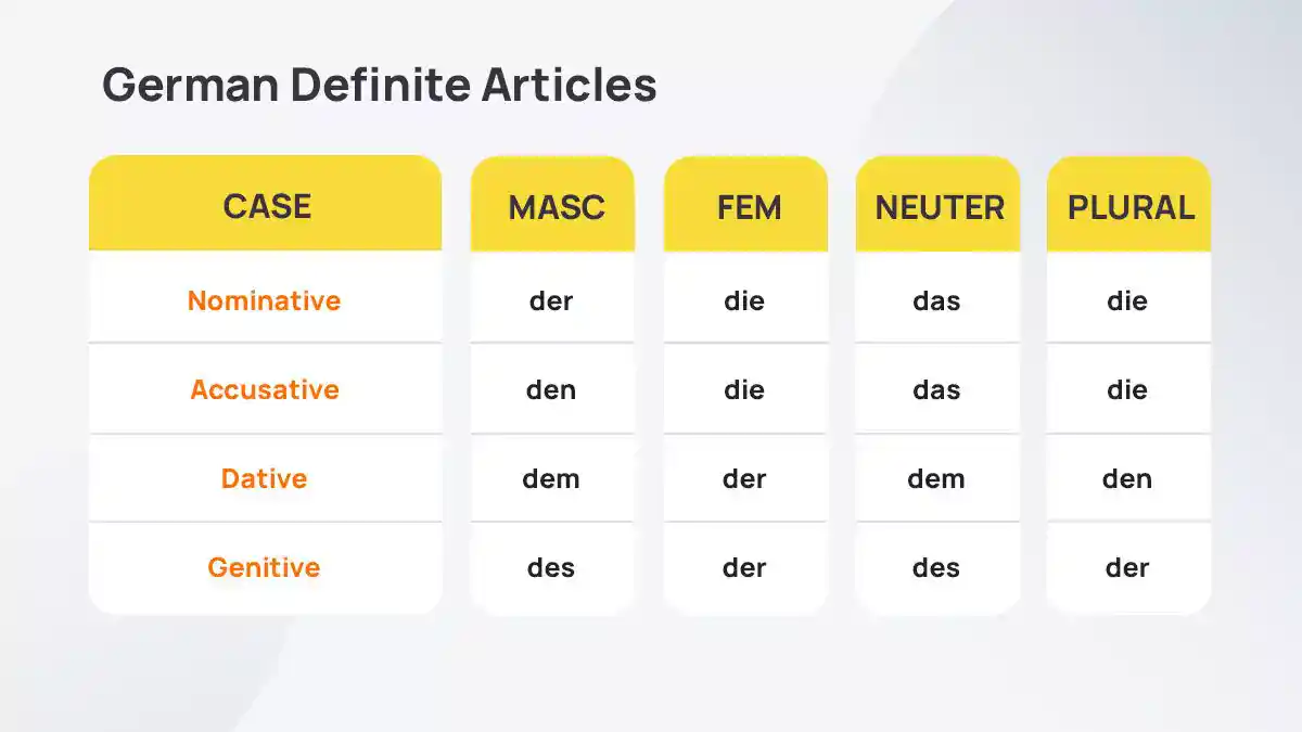 وبالتالي فإن اللغة الألمانية بشكل عام تعتمد على 4 حالات رئيسية، ولكن في هذا المقال عبر «بوابة إبداعات التقنية»، سنحاول التركيز بشكل أكبر على الحالات الثلاث الأكثر استخداماً: