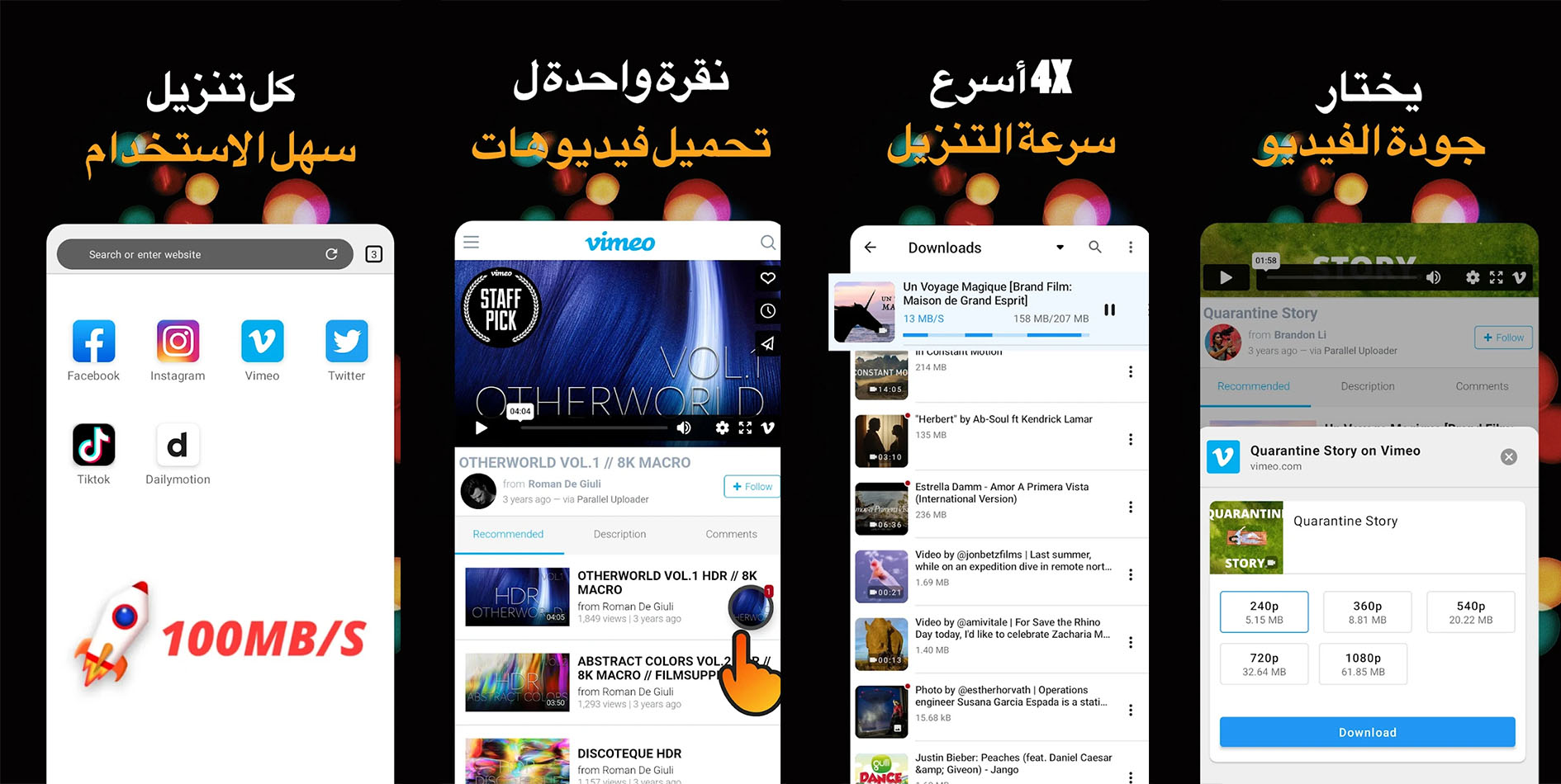 - دعم الجودة العالية: حاول أيضاً التأكد من كون التطبيق يدعم تنزيل الفيديوهات بجودة عالية (HD أو 4K).