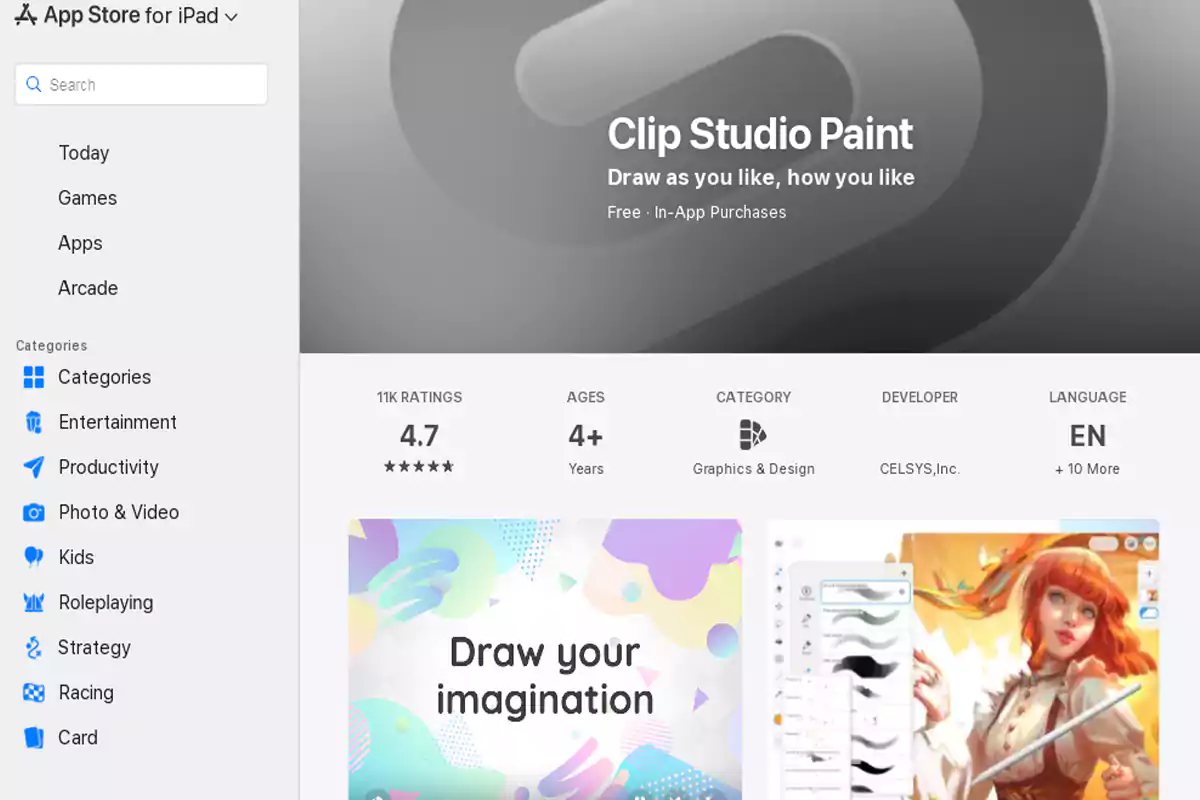 ويعتبر أيضاً من الخيارات الشائعة، في حال كان هدفك الأساسي هو الحصول علىتطبيق يقدم تجربة شبه متطابقة مع برامج الكمبيوتر، فإن Clip Studio Paint هو الخيار الأقرب للاحتراف.