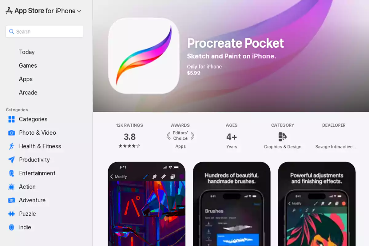 وبالنسبة إلى مستخدمي الهواتف الذكية التى تعمل بنظام تشغيل iOS للايفون، فإن تطبيق Procreate Pocket يعتبر أحد أهم الأسماء الشهيرة في عالم الرسم الرقمي على الهاتف.