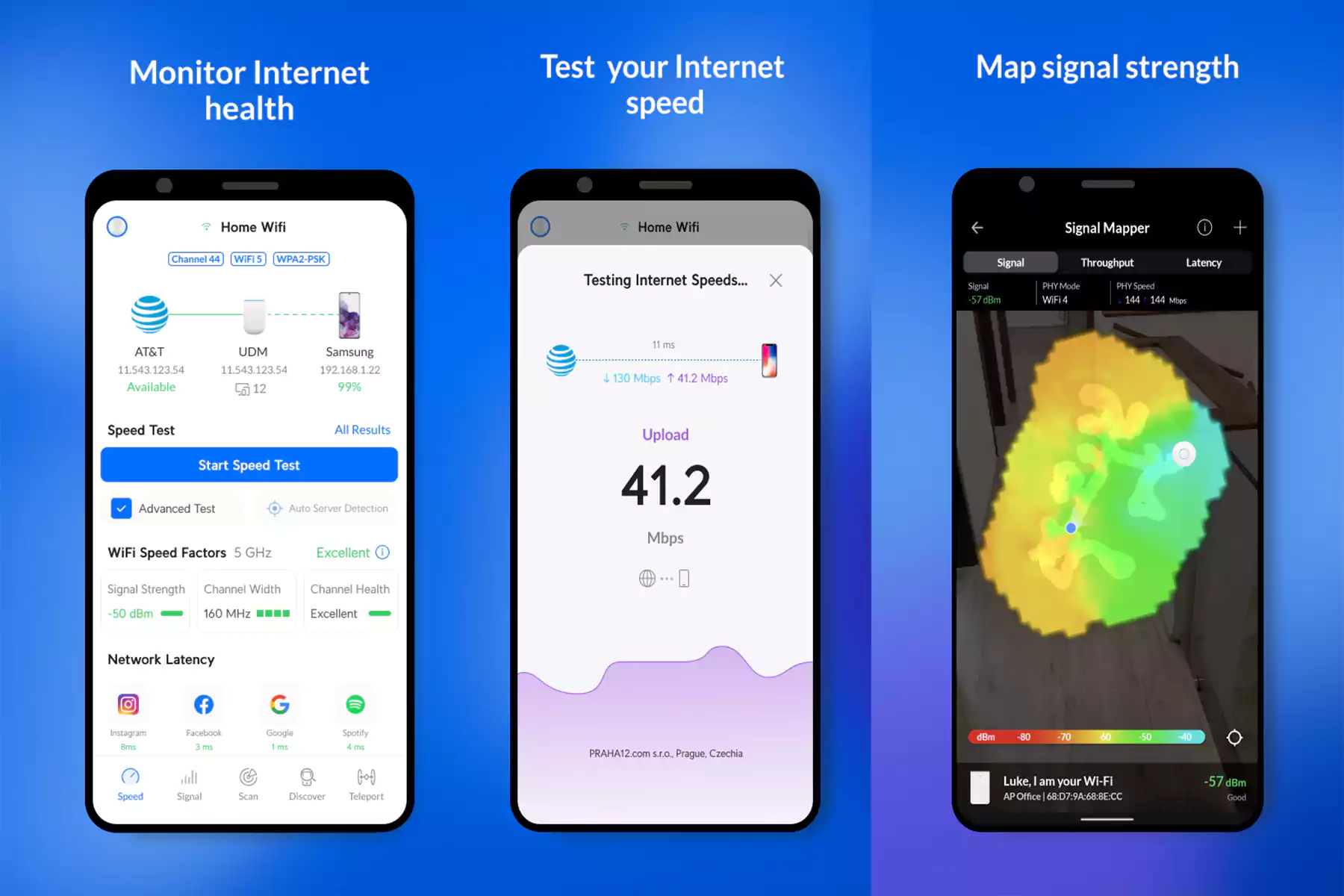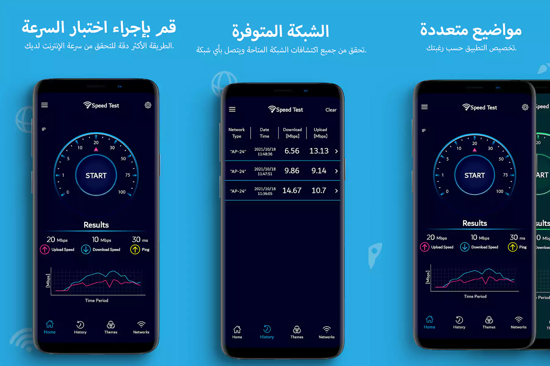 - يعرض قوة الشبكة وسرعتها الحقيقية.