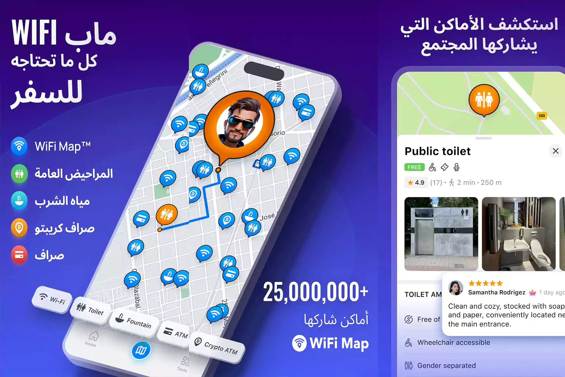 - إمكانية تنزيل خريطة الواي فاي للاستخدام بدون إنترنت.