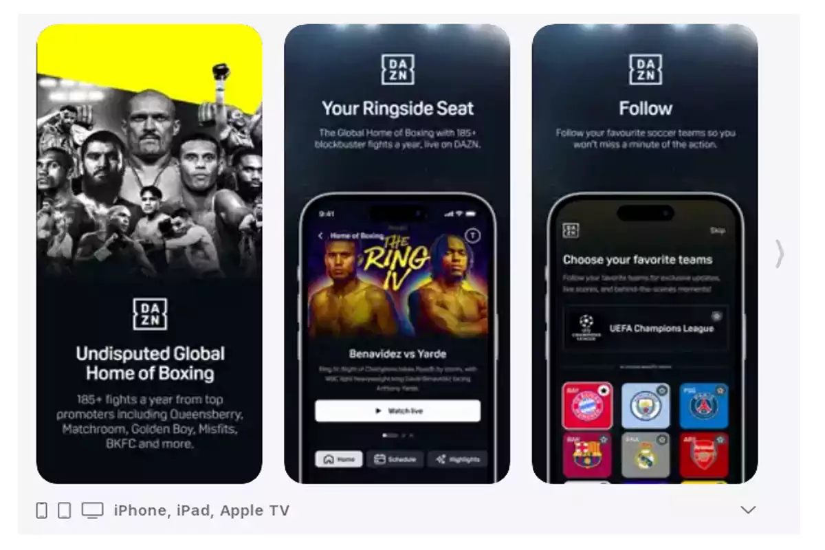 ويوفر تطبيق DAZN تجربة مشاهدة مميزة للعديد من الألعاب الرياضية المتنوعة على الهواء مباشرة، ومن أبرز مميزات التطبيق ما يلي: