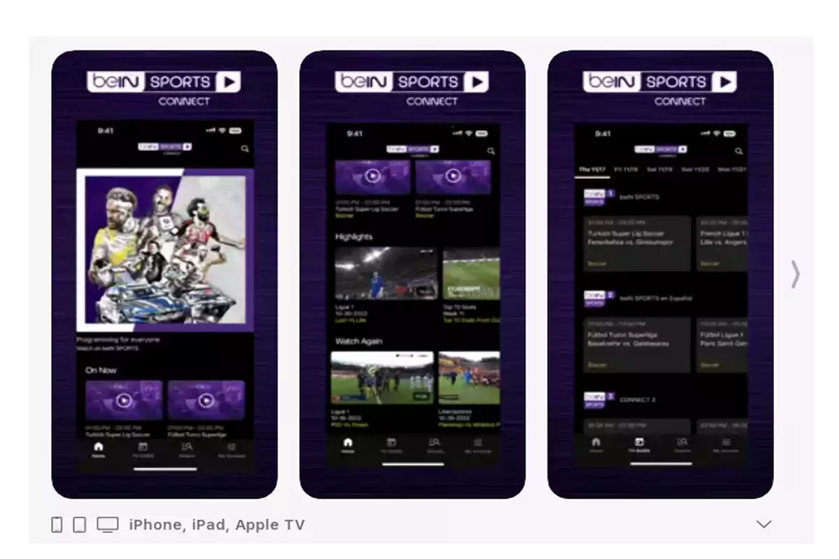 وتعتبر منصة beIN Sports بمثابة الخيار الأمثل لمحبي متابعة البطولات العربية والدولية، ومن أبرز مميزات التطبيق ما يلي: